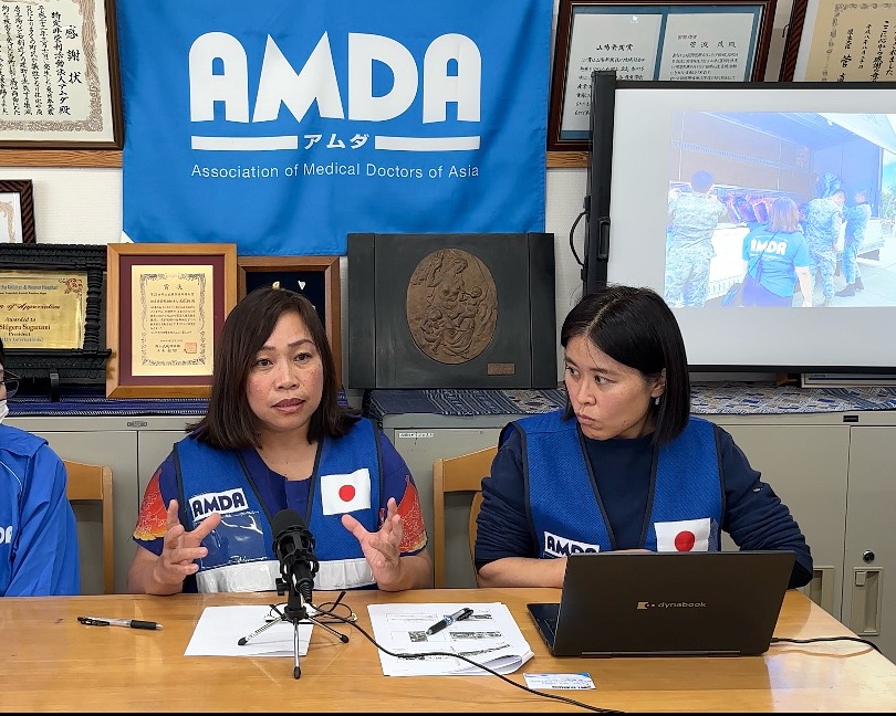 フィリピン・セブ島、ミンダナオ島地震被災者緊急支援活動 ⑥ 2025年10月30日 10月22日、フィリピンから帰国したAMDA派遣チームは、翌23日、岡山市のAMDA事務所にて、活動報告会見を行いました。 約10日間にわたる支援活動の内容について詳しく報告したほか、現地の様子や活動を行うなかで感じたことなどをお話ししました。 度重なる余震による不安定な生活が続いていることから、今後もメンタル面でのケアが必要となる可能性が考えられます。派遣チームは帰国しましたが、AMDAは今後も引き続きフィリピン支部、現地関係者と連絡をとりながら状況を注視していきます。
