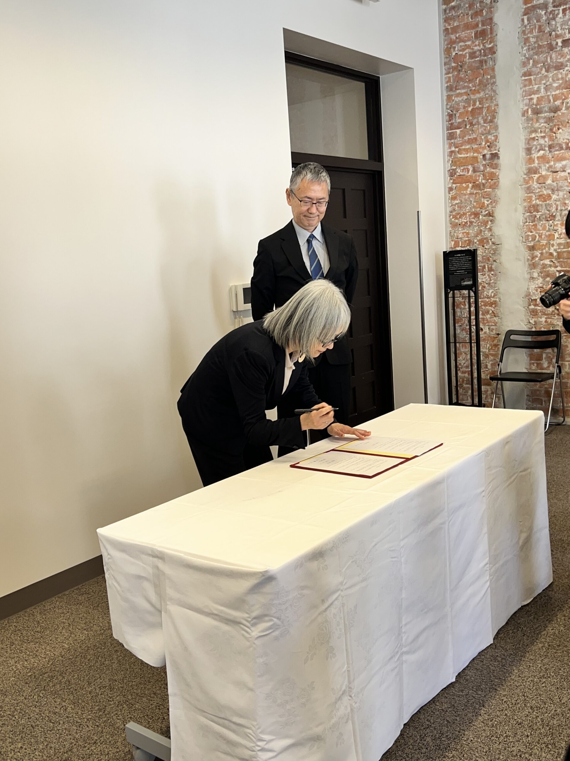 2025年11月19日、倉敷市本町・大原美術館 児島虎次郎記念館にて、AMDAと公益財団法人大原芸術財団は、包括連携に関する協定の調印式を行いました。