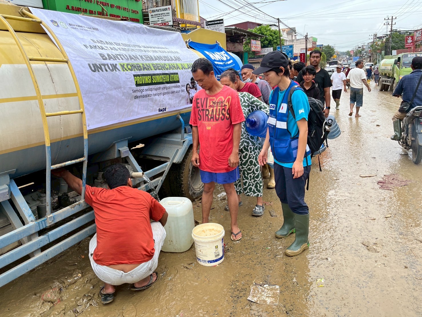 物資支援では、有志の現地医学生が実施した募金活動によって集められた寄付を活用して、給水車を手配し、水14トンを被災者の方に提供しました。