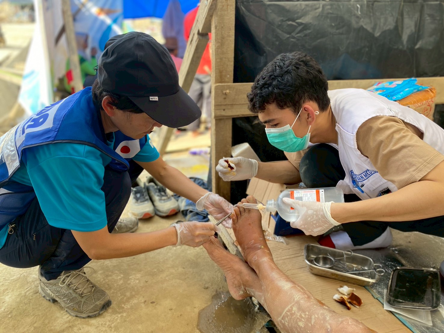 被災者の中には、外傷や皮膚疾患に加え、洪水後に舞い上がる土ぼこりの影響による気管支トラブルを訴える方も多く見られました。