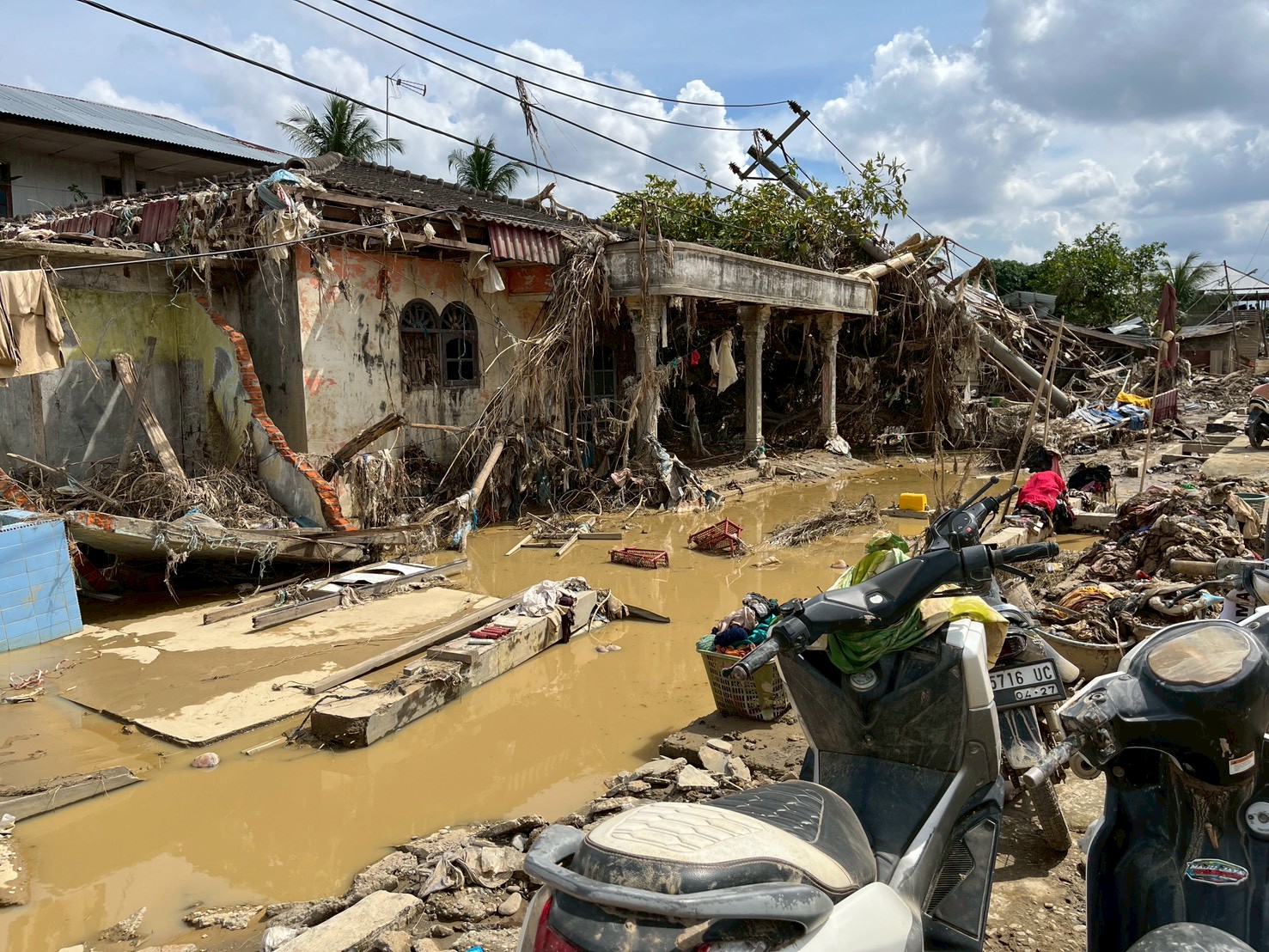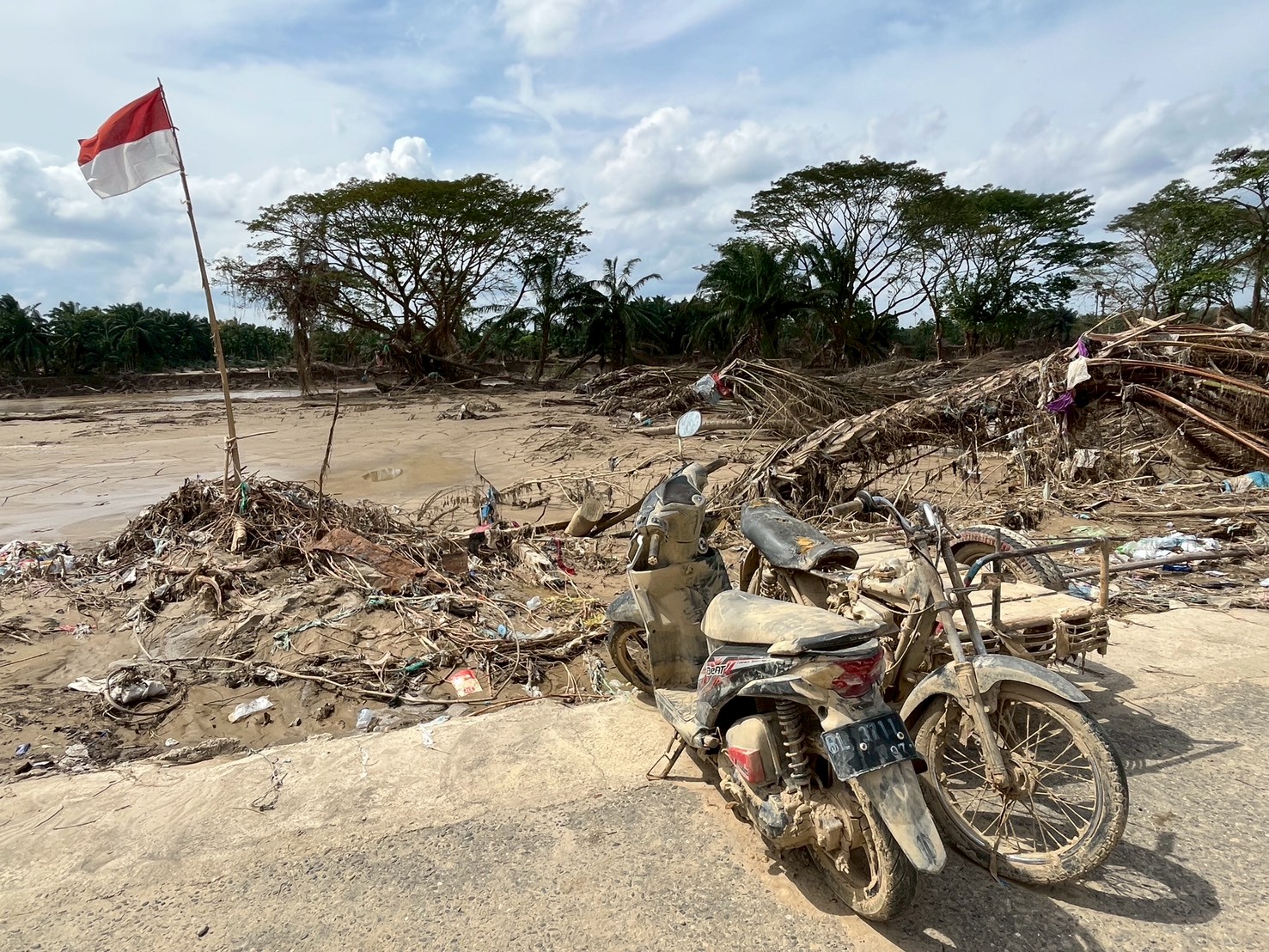 多くの家やヤシの木は流され、跡形もなくなり、今は泥が堆積しています。さらに、被災地域は広範囲にわたり、水道・電気の復旧が進んでおらず、