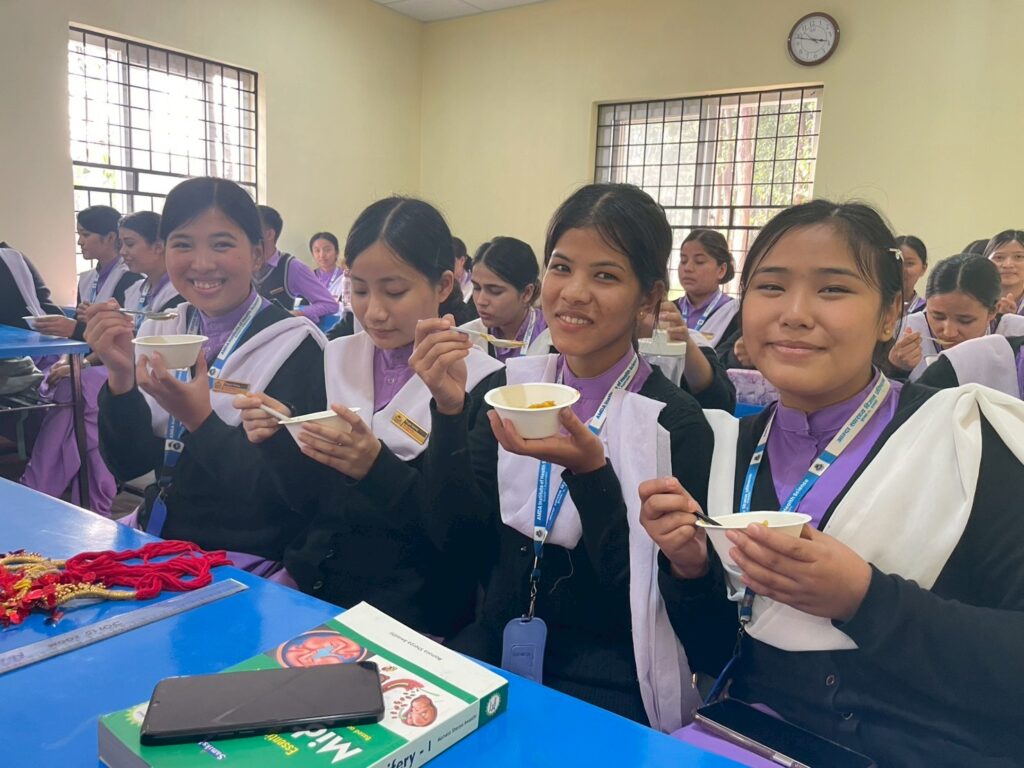 さらに、ネパールの学生から現地の料理をごちそうになり、看護学生からは日本から持参したレトルトカレーを紹介しました。食べ物やスポーツ、衣装など、お互いの国の文化や考え方に直接触れ、理解を深める貴重な機会となりました。学生たちは「相手の文化をより深く知りたい」と話しており、今後も継続して交流を深めていきたいとのことです。