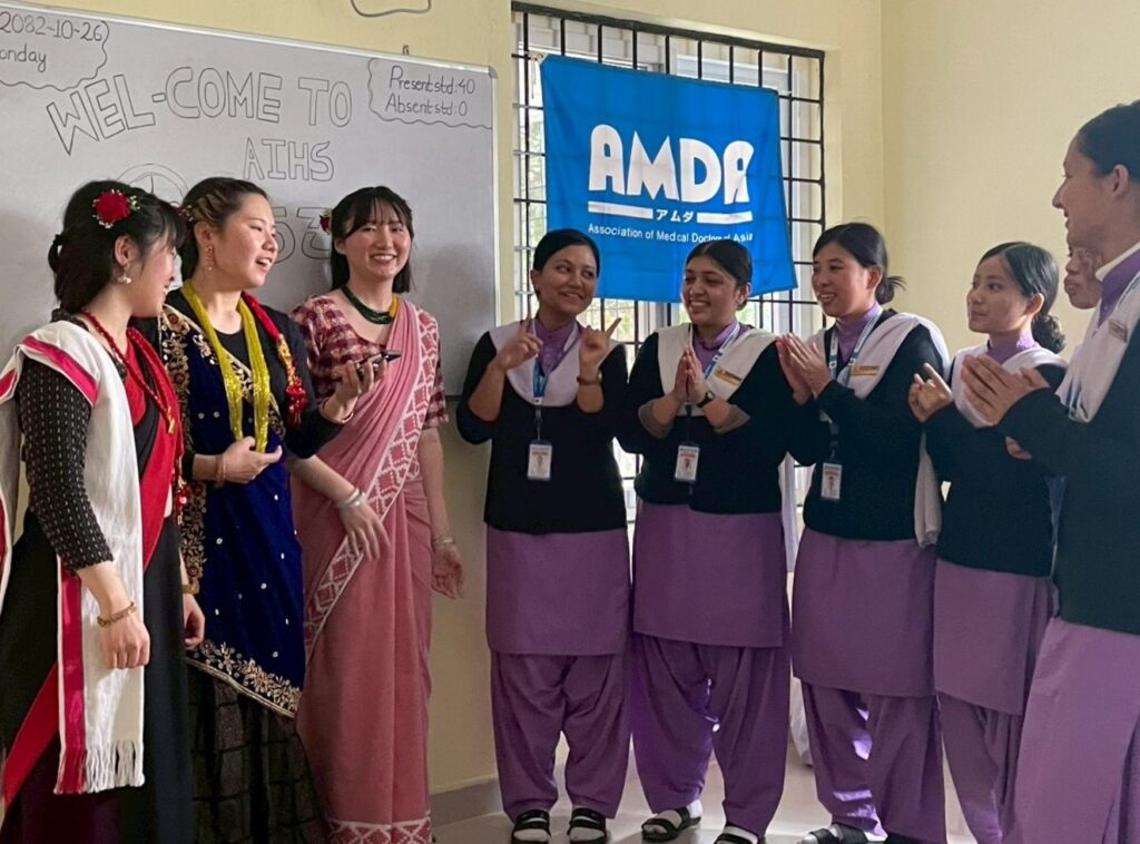 ネパール研修に参加しているAMDA神女クラブの看護学生3名は2月8~11日、AMDAネパール支部が運営するネパール子ども病院附属専門学校を訪問しました。