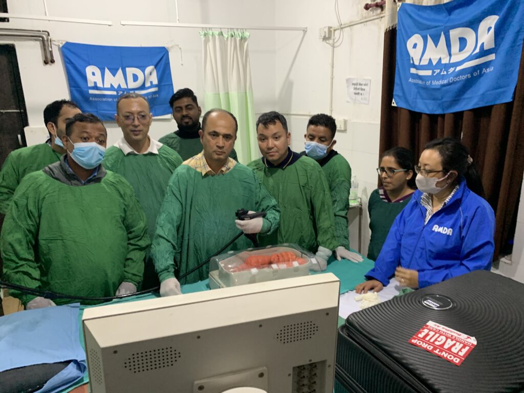 AMDAは2016年より、ダマック病院における内視鏡技術の向上を目的として、日本およびネパールにおいて研修事業を実施しています。岡山県の国際貢献「ローカル・トゥ・ローカル」技術移転事業の一環として、2016年には同病院で内視鏡を担当するディワス医師が岡山済生会総合病院にて3か月間の研修を受けました。