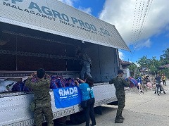 16 日、チームは二手に分かれて活動しました。1 つ目のチームは、拠点としていたダバオから車で片道7 時間程かかる、被災地の中でもアクセスが困難なダバオ・オリエンタル州カラガ町に向かいました。町内の大学、コミュニティーセンター、ヘルスセンターの各代表者に、合計300 世帯分の食糧(お米5kg、インスタント麺、魚やコーンビーフの缶詰、コーヒー、クラッカーなど)を預け、後日、それらを各代表者から被災した世帯に配布していただきました。