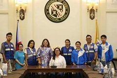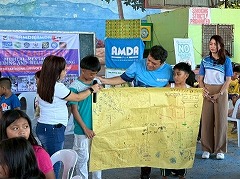 2 つ目のチームは、ダバオ市トリル区にある2 つの小学校で、子どもを対象としたメンタルヘルスプログラムを行い、230 人以上が参加しました。参加者はグループに分かれて、地震が発生した時の様子を絵に描いて発表。「今後地震があったらどうしたいか」「自分は将来どうなっていたいか」などの質問に答えたりしました。また、懐中電灯、救助ホイッスル、飲料水などの防災グッズと、絆創膏、ハサミ、 濡れティッシュ、マスクなどの応急処置キットが配布されました。