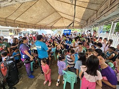 翌19 日、震源近くのセブ島北部に位置するメデリン町北ラミンタックと南ラミンタック地区で医療相談と子どもを対象としたメンタルヘルスプログラムを実施し、200 人以上が参加しました。子どもたちにはお菓子などの物資も配布しました。