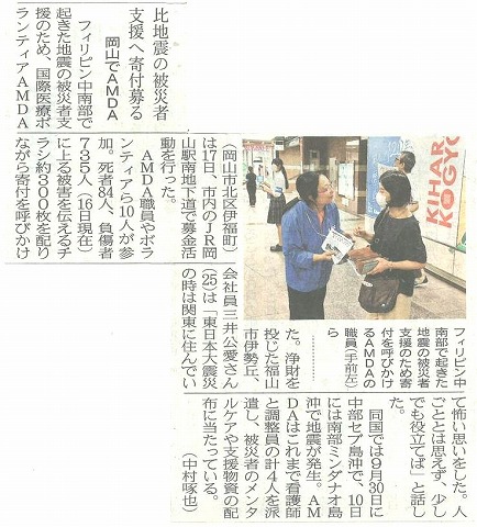 比地震の被災者支援へ寄付募る 岡山でAMDA 山陽新聞 – AMDA(アムダ)