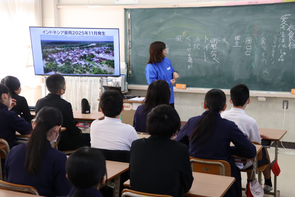 講演では、AMDAの活動は決して一人でできるものではなく、多くの方々の支えや協力によって成り立っていることをお伝えしました。また、まもなく中学生になる皆さんへ、「一人ではできないことも、チームならできる」というメッセージもお届けしました。