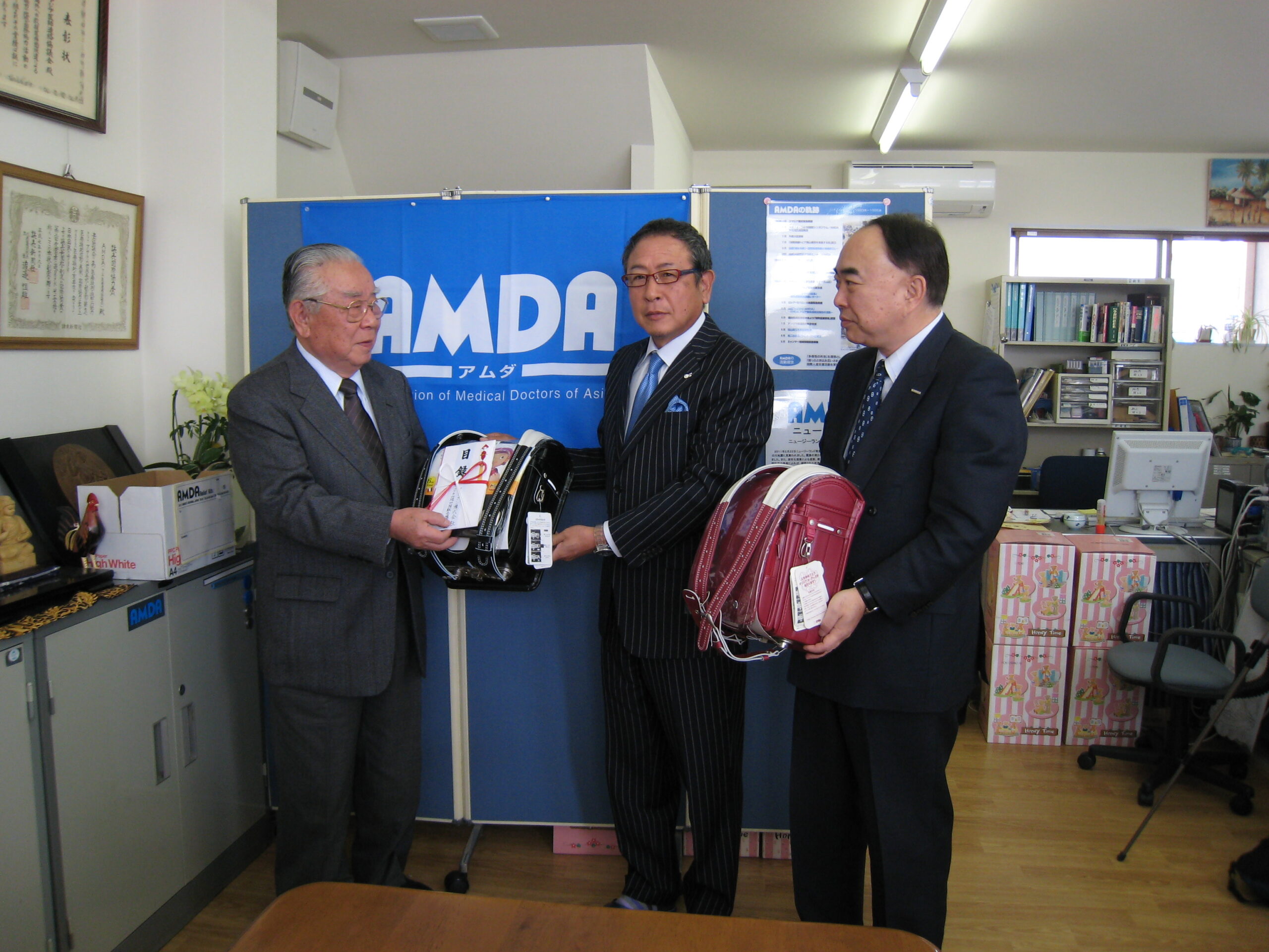 クラブン様・コクヨ販売様からランドセル寄贈 2011年4月8日 4月2日クラブン様・コクヨ販売様からランドセルを寄贈頂きました メッセージ−この度の大震災はまさしく国難だと思います。 国民の一人としてお役に立てて嬉しい限りです。 クラブン様のホームページはhttp://www.kurabun.co.jp/