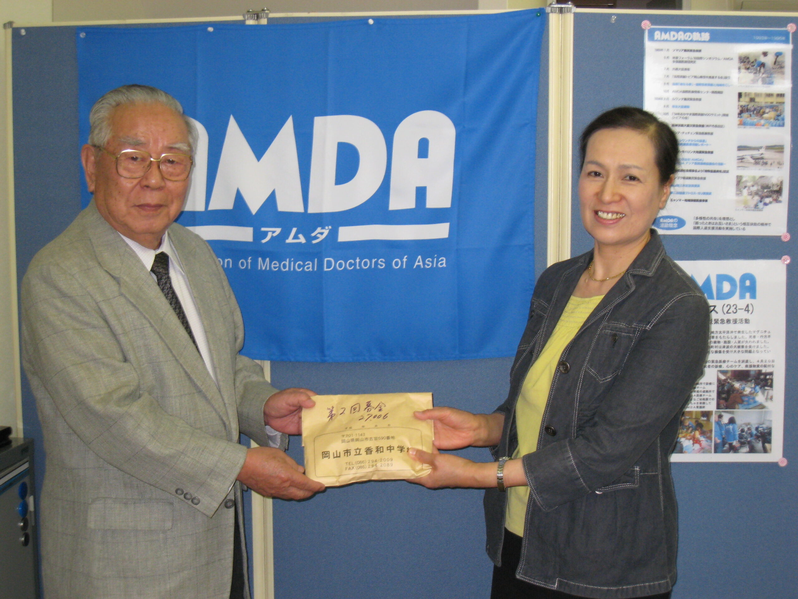 5月27日香和中学校区様よりご寄付を頂きました −被災者の方々へのメッセージ がんばり過ぎないで下さい。周囲のわたしたちが頑張りますから。