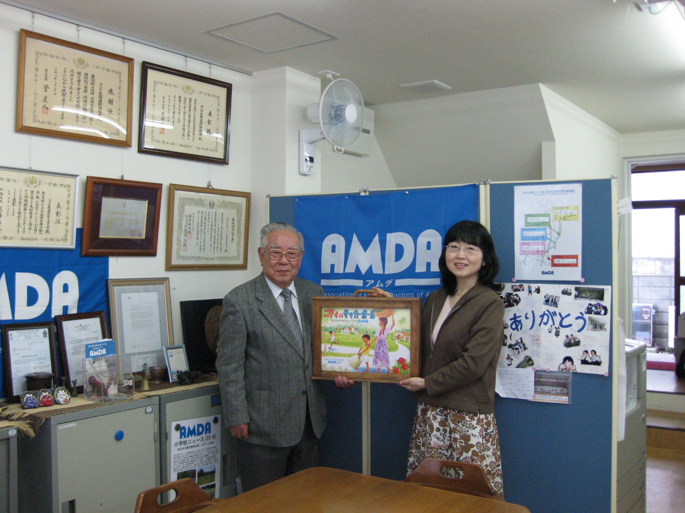 絵本作家・関藤様に感謝状贈呈 2011年10月17日 絵本作家・関藤様より紙芝居の贈呈を頂きました 紙芝居は「ニティのサッカーボール」という題名でせきとうひで子作・画 AMDA監修 オリジナルのものです 出張で紙芝居の実演をしたり講演の中で紹介することも受け付けております。また紙芝居の貸し出しもしております。AMDAにお問い合わせください。