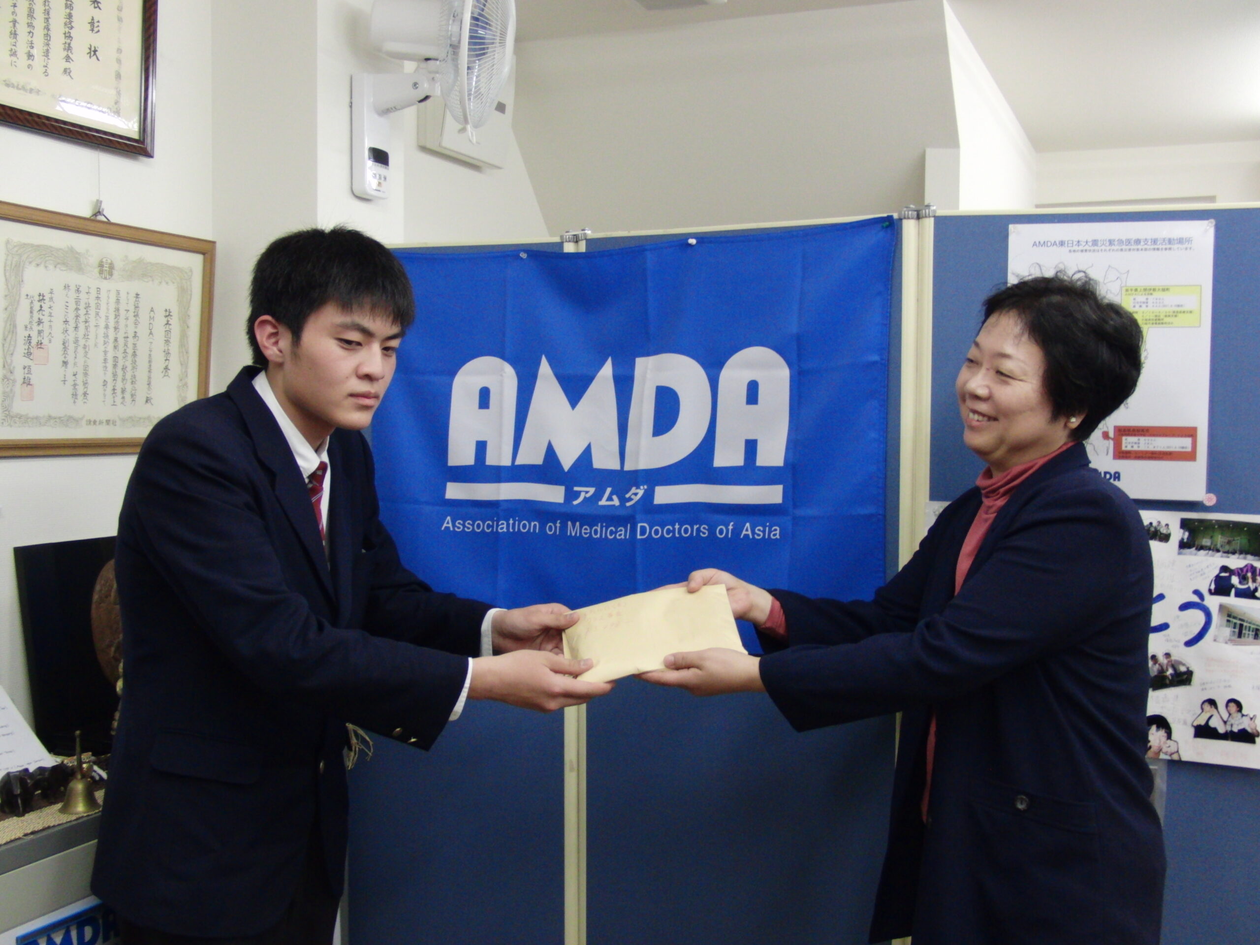 高松農業高校様よりご寄付 2011年11月5日 11月5日高松農業高校様よりご寄付を頂きました メッセージ: クラス単位やOG,OBの方も参加されての募金を持ってきました。AMDAの活動に使ってください。