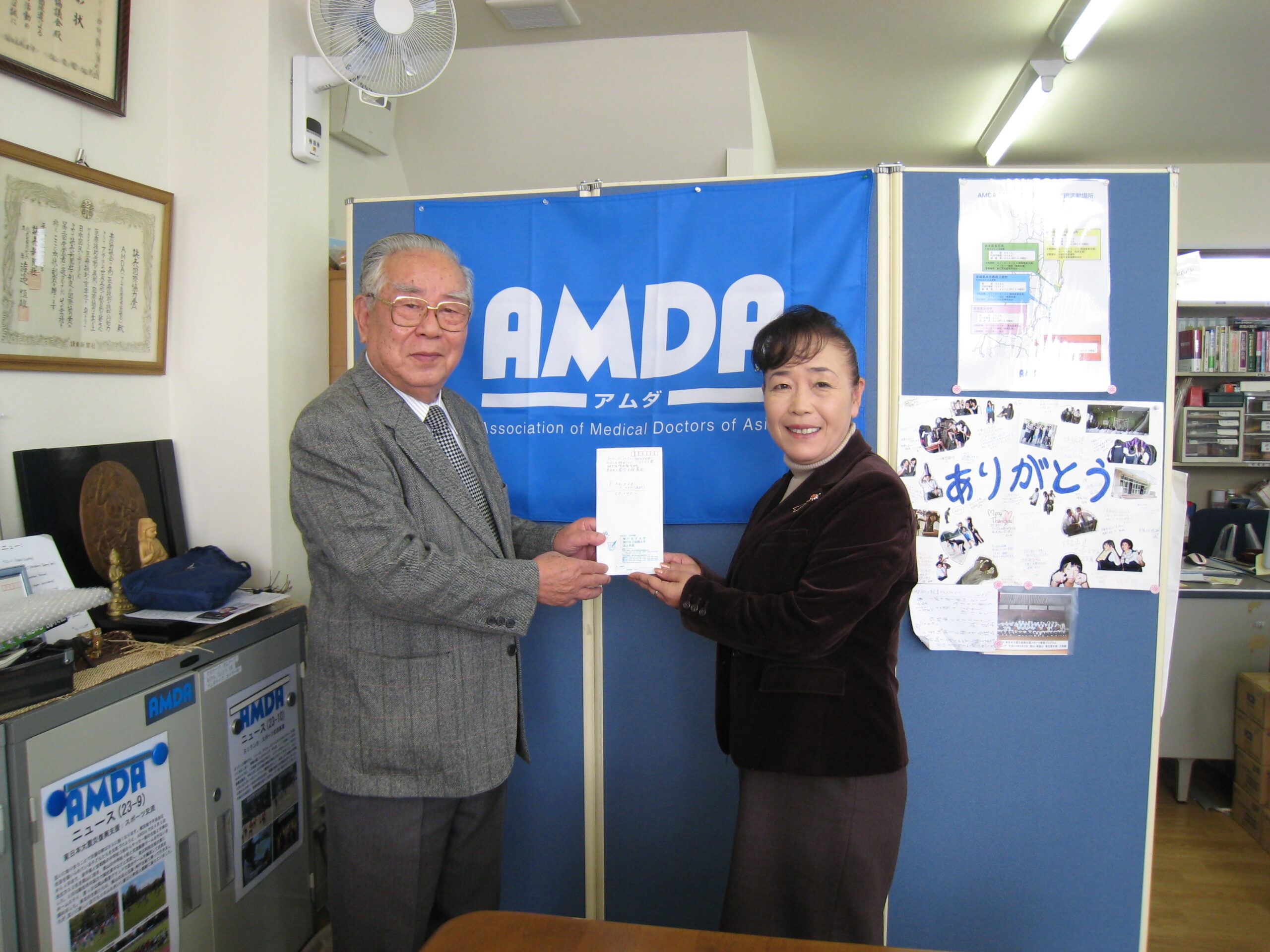 神戸女子大学文学部神戸国際教養学科 AMDA神女クラブより寄付 2011年11月14日 11月14日神戸女子大学文学部神戸国際教養学科 AMDA神女クラブより寄付を頂きましたメッセージ:神戸女子大学の大学祭で神戸国際教養学科学生有志とAMDA神女クラブで東日本大震災復旧・復興支援募金活動を行いました。少しでも東日本の皆様のお役に立てればうれしいです。ホームページ:http://www.yg.kobe-wu.ac.jp/wu/index.html