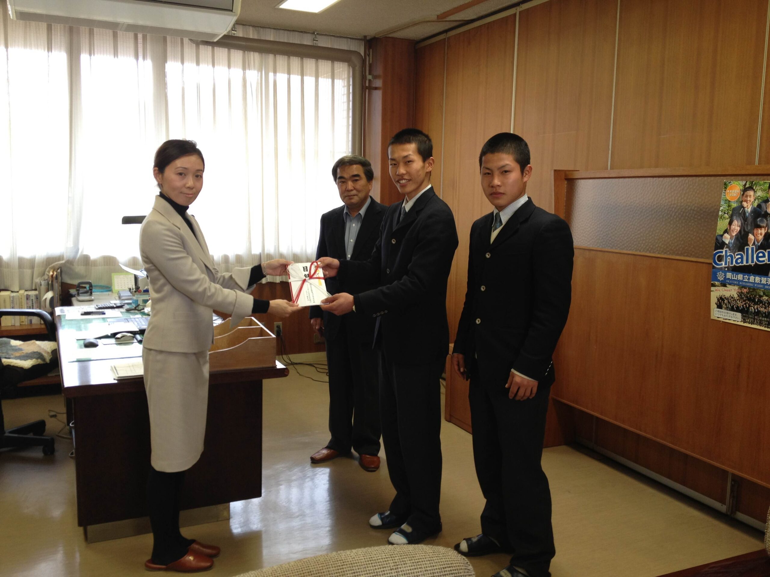 岡山県立倉敷鷲羽高等学校様 ファッションタウン児島推進協議会イベント委員会様よりご寄付 2013年1月31日 1月31日 岡山県立倉敷鷲羽高等学校様 ファッションタウン児島推進協議会イベント委員会様より 年末年始に行われたファッションタウンお餅つきイベントの売り上げの一部をご寄付いただきました。 メッセージ: ・こうゆう形で貢献できてうれしいです。 ・自分たちが参加したボランティアで助かる人がいてうれしいです。