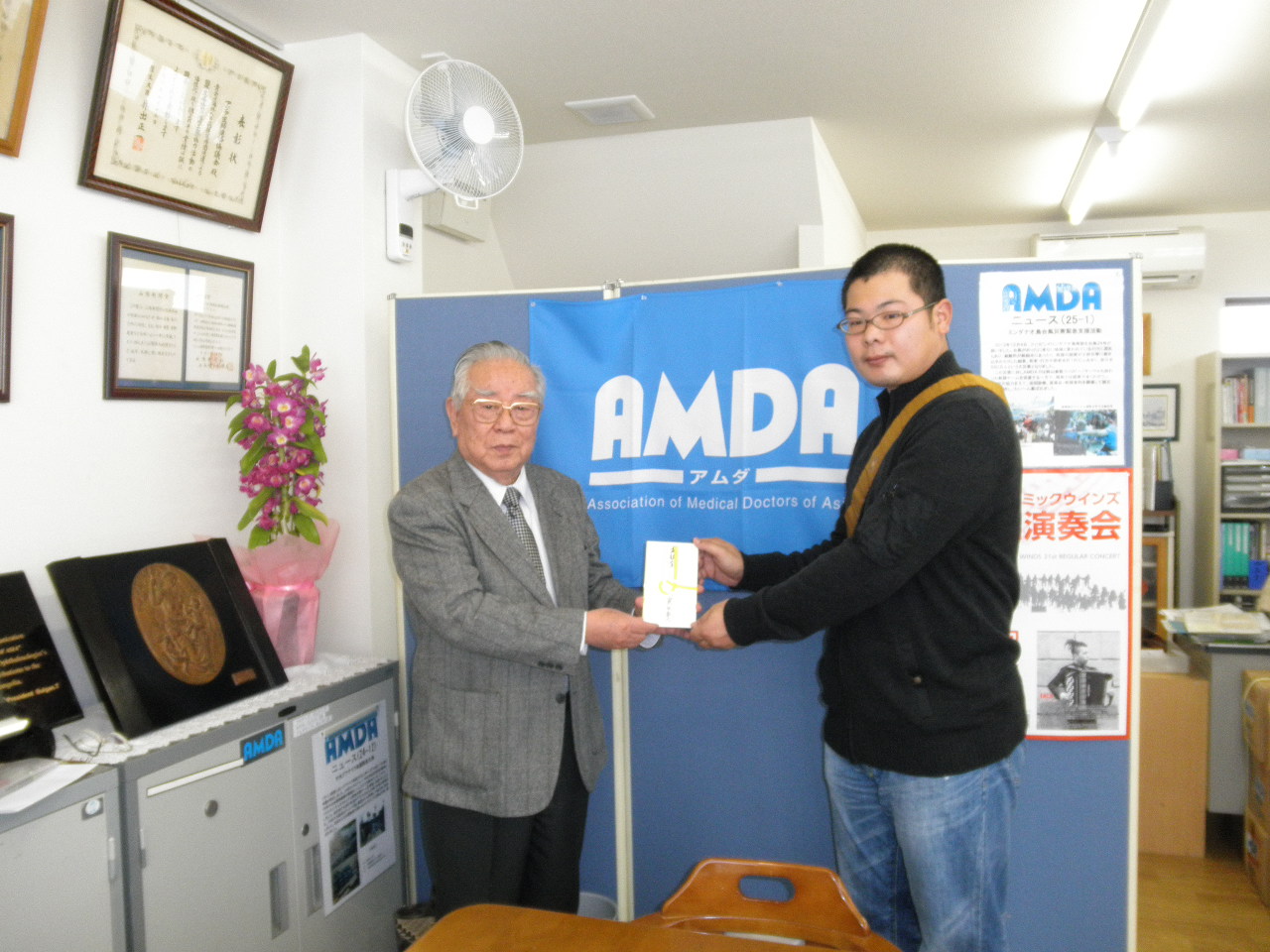 2月6日 日蓮宗社教会様よりご寄付の贈呈がありました。 メッセージ: 「一人でも多くの方の救いとなりますように」