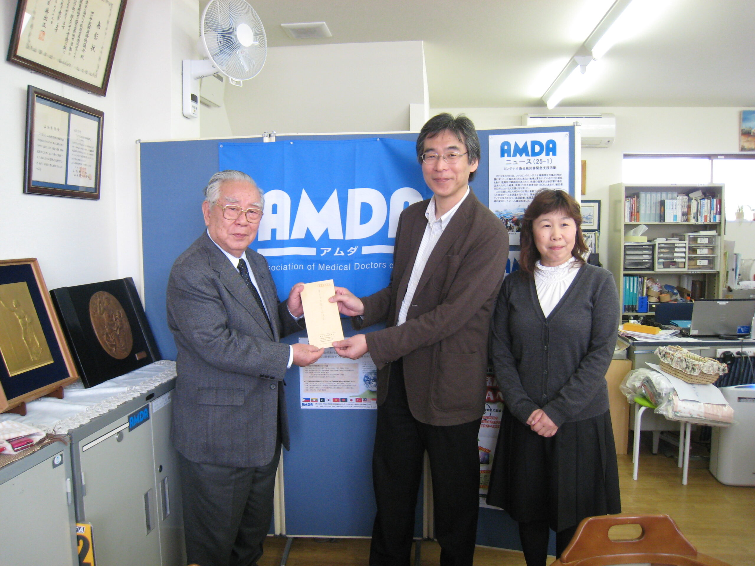 岡山大学職員組合様よりご寄付 2013年3月29日 3月29日 岡山大学職員組合様よりご寄付の贈呈がありました。 メッセージ: 岡山大学職員組合では、震災の復興に貢献しようと、一昨年度よりAMDAに義援金を寄付してきました。「当たり前の生活を当たり前にできること」この幸せを一日も早く共有できるように、私たちもできることに取り組みます!