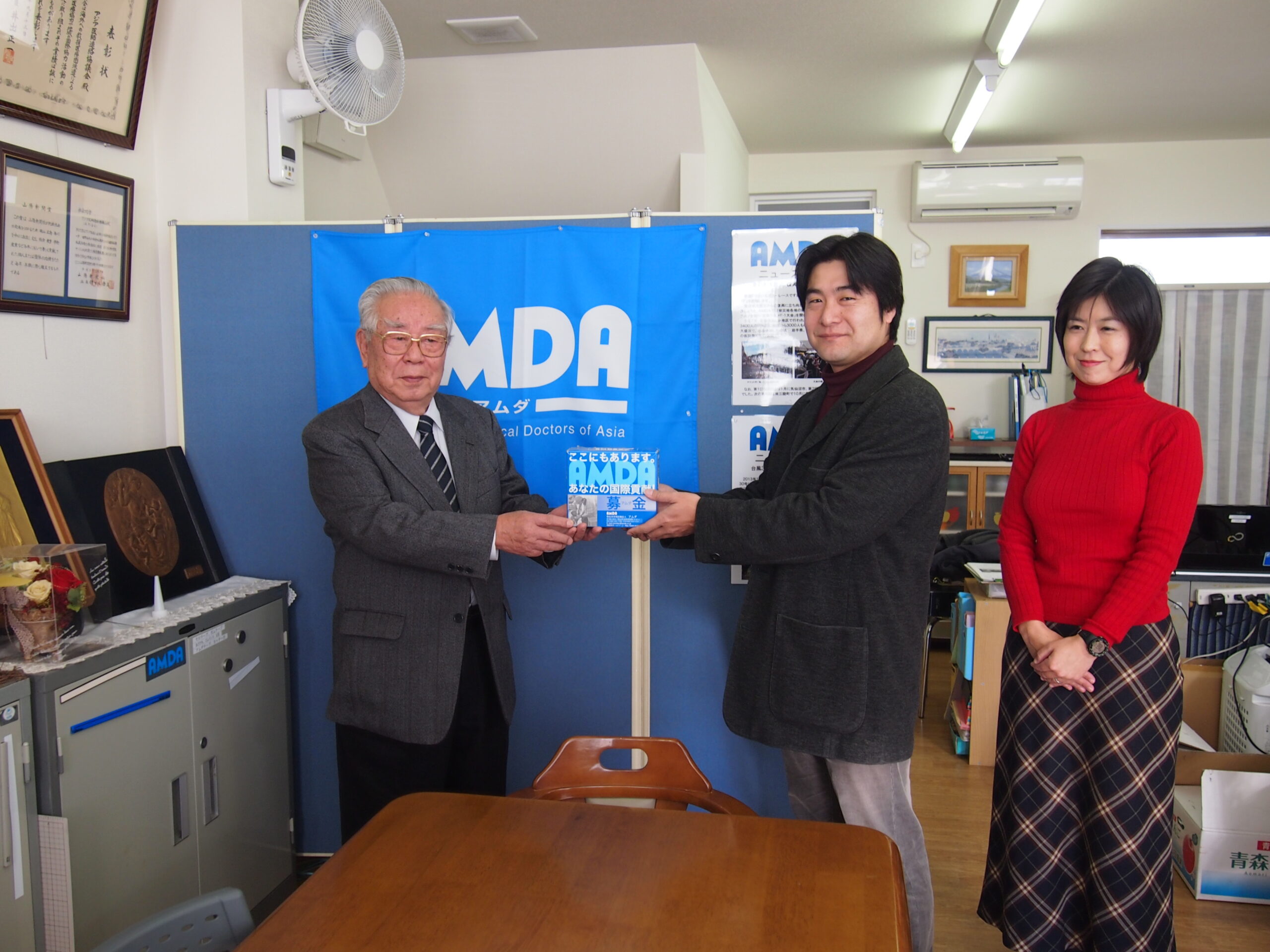 バイオリニスト入江洋文様・ピアニスト西牧尚子様よりご寄付 2013年12月6日 バイオリニスト入江洋文様・ピアニスト西牧尚子様よりご寄付 12月5日 バイオリニストの入江洋文さんとピアニストの西牧尚子さんが事務所を訪れ、「入江洋文・西牧尚子チャリティーコンサート」の収益を募金くださいました。 メッセージ:今回は現地に伺って演奏することができ、またその御報告もでき大変嬉しく思っております。会場に足を運んでいただいた皆様、御協力いただいた方々に感謝いたします。