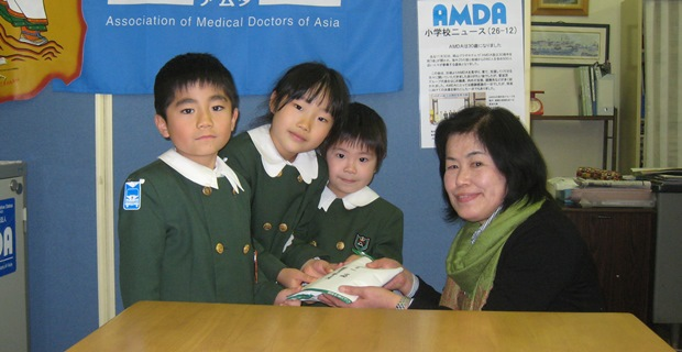 朝日塾幼稚園様よりご寄付 2015年2月19日 2月17日 朝日塾幼稚園様よりご寄付を頂きました。 園児の代表3人が先生と事務所にお越しくださり贈呈式を行いました。 メッセージ: 幼い子どもたちには、AMDAのことを理解するには難しいかもしれませんが少しでも多くの方々のために役立てていただけると有難いと思います。 園としては、これからも続けていきたいと思っています。 よろしくお願いします。
