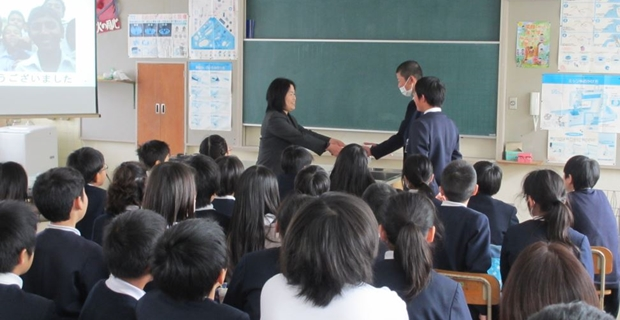 岡山市立平津小学校児童会よりご寄付 2015年2月27日 2月23日岡山市平津小学校児童会よりご寄付を頂きました。 当日はAMDAスタッフから、1時間ほどお話をさせていただき、会の最後に児童の代表から 募金の贈呈をしてくださいました。 メッセージ: 困っている人達に有効に使ってください。