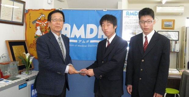 岡山県立高松農業高等学校生徒会様よりご寄付 2015年4月1日 3月31日、 岡山県立高松農業高等学校生徒会の方がご寄付を持ってきてくださいました。 メッセージ: 今後もAMDAを支援しますので、宜しくお願いします。