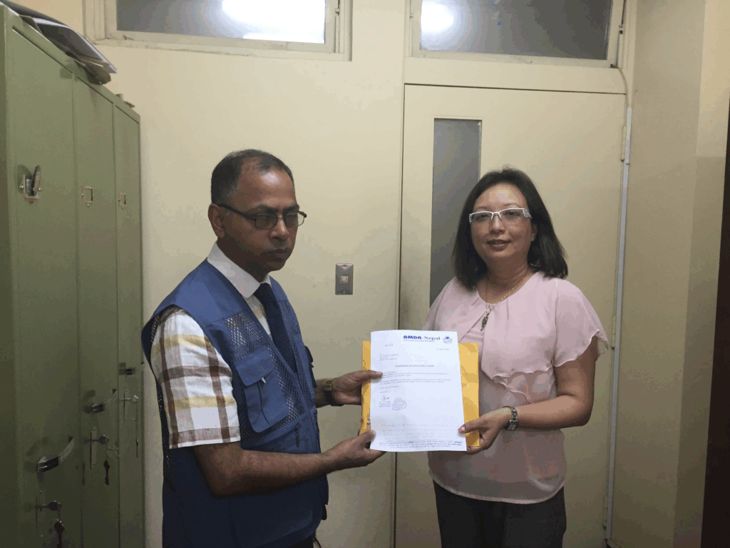 アムダネパール支部長シン医師よりご寄付 2016年5月5日 アムダネパール支部長シン医師より、アムダネパールから熊本地震の被災地支援のためにご寄付金、2000ドル(ネパールルピー212、060)をいただきました。 我々は「相互扶助」として今回の熊本地震被災者にアムダネパールより少しですが、寄付金を送ります。昨年はネパール地震の時ご支援をいただきまして、心より感謝しますととメッセージをいただきました。