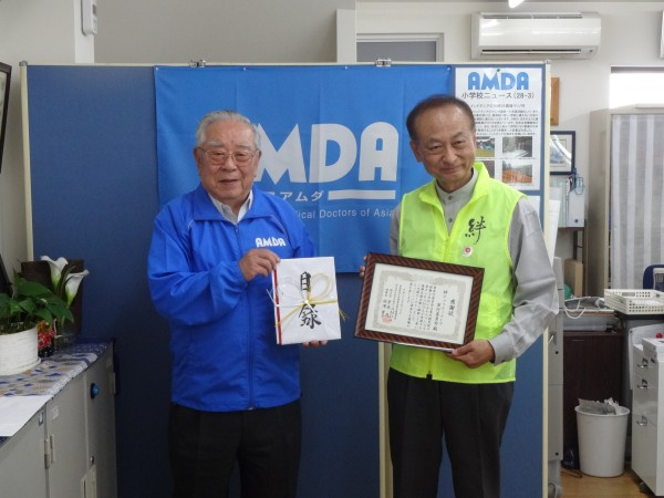 AMDA岡山本部に代表である池田潤治様がお越しになり、東日本大震災復興に向けての温かいお気持ちを寄せられました。