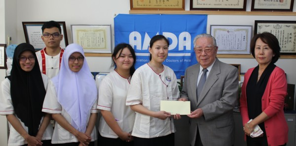 来日にあわせてAMDA事務所を訪問し、ご寄付をいただくと同時に民族衣装や日本語を披露してくださいました。