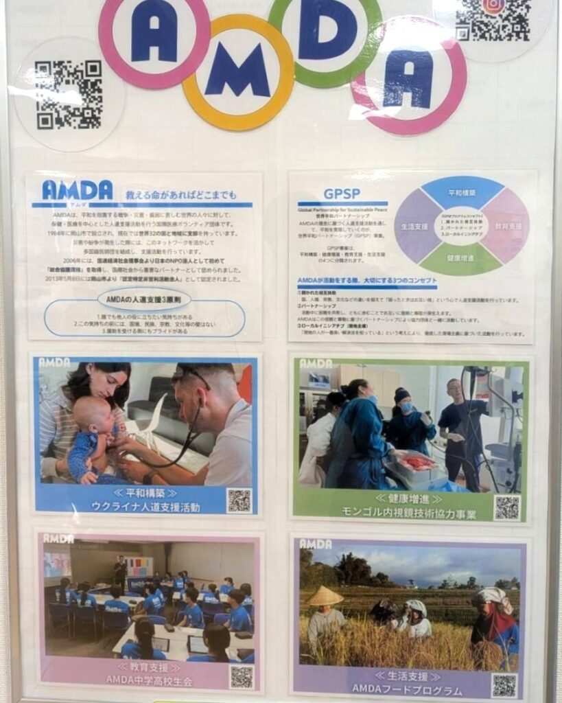 ゆうあいセンターにてAMDAの紹介パネル掲示中! 2025年11月4日 岡山県ボランティア・NPO活動支援センター「ゆうあいセンター」2階に、AMDAの活動パネルを掲示いただきました!お立ち寄りの際はぜひご覧下さい